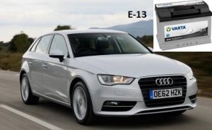 Audi A3 Sportback 1,4 125 hp 2009 akü varta 12v 72 amper E13 takılır.